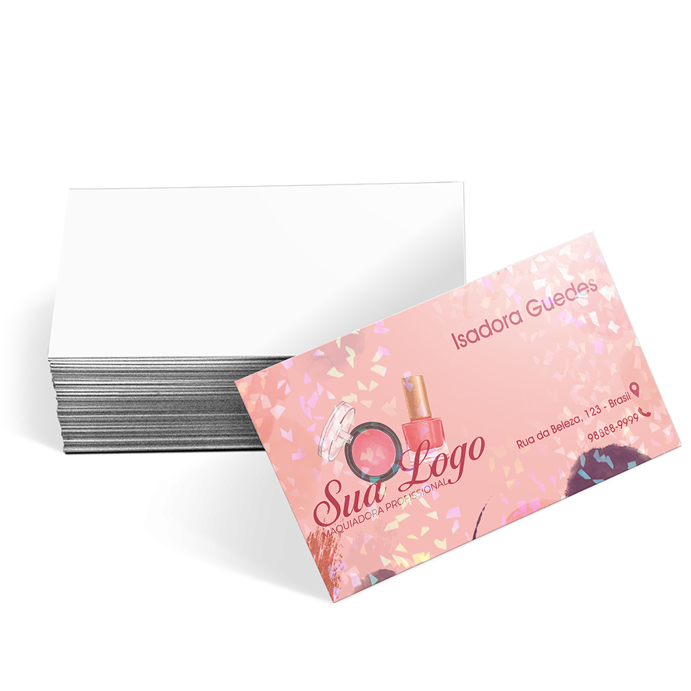 ID: 6777 Descrição: Couche Laminacao Holografica Frente - 250g Quantidade: 50 Valor: R$ 83,00 Cores: 4X0 Tamanho: 85 x 55 mm Prazo: 3 dias úteis