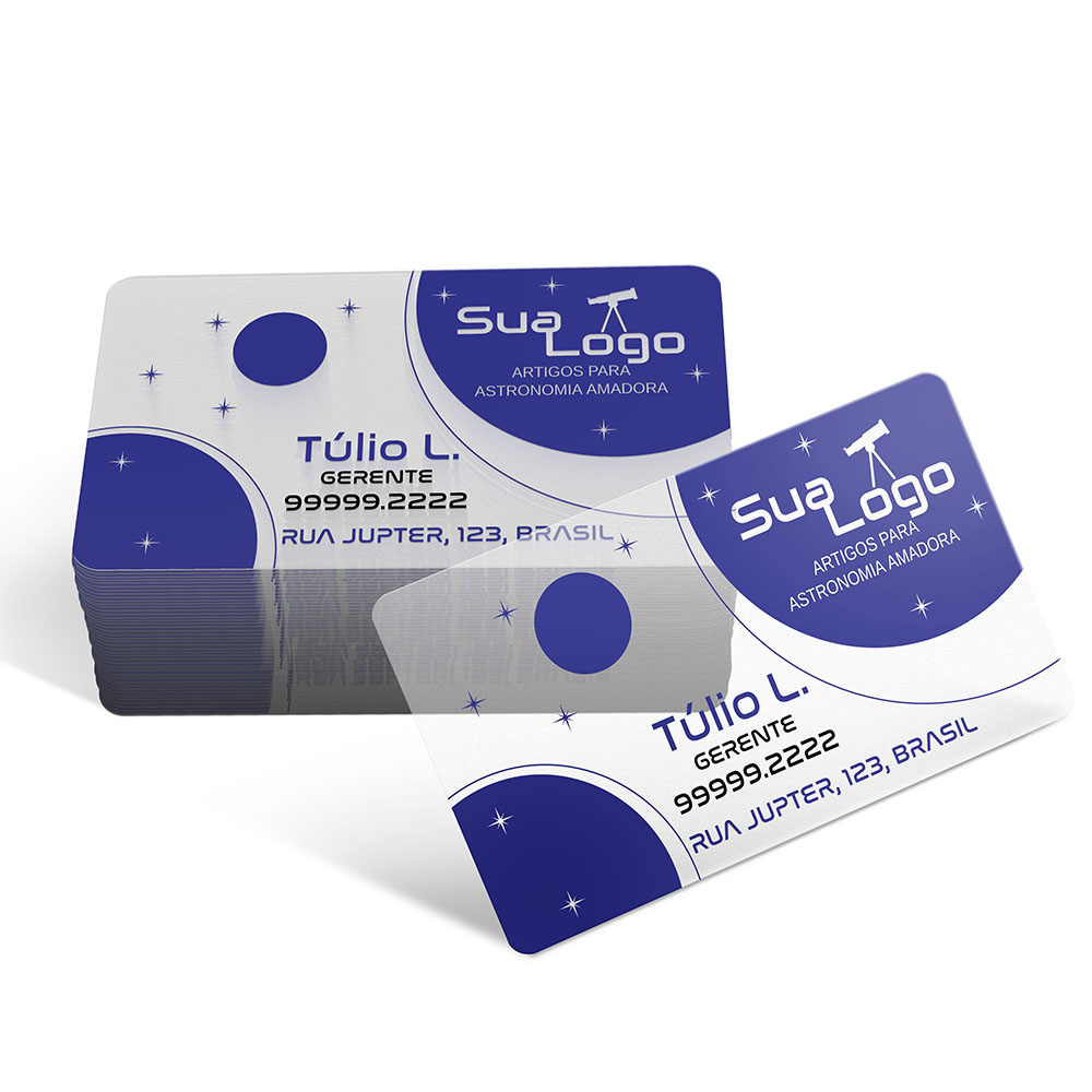 ID: 7622 Descrição: Cartao Fidelidade Plastico Compacto - 75g Quantidade: 250 Valor: R$ 998,00 Cores: 4X0 Tamanho: 59 x 91 mm Prazo: 4 dias úteis