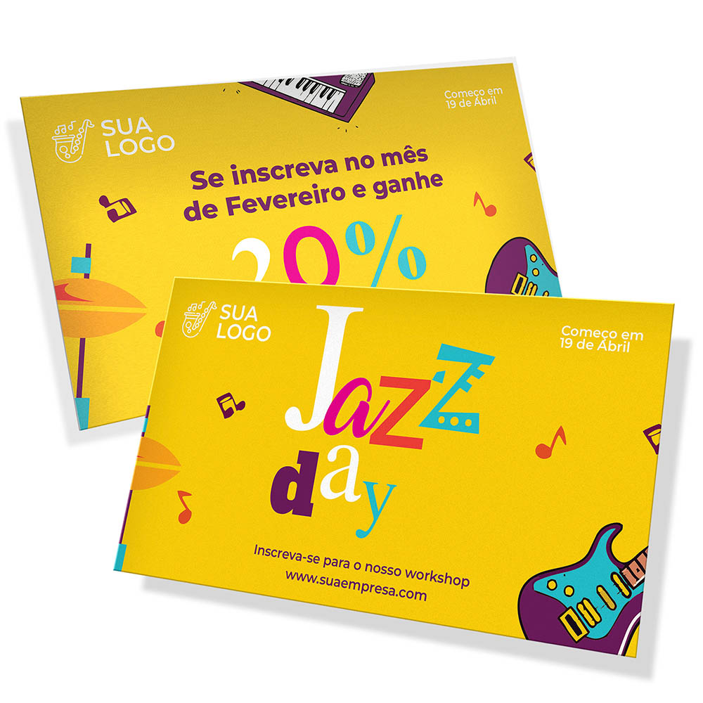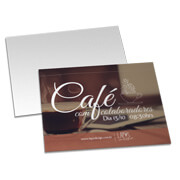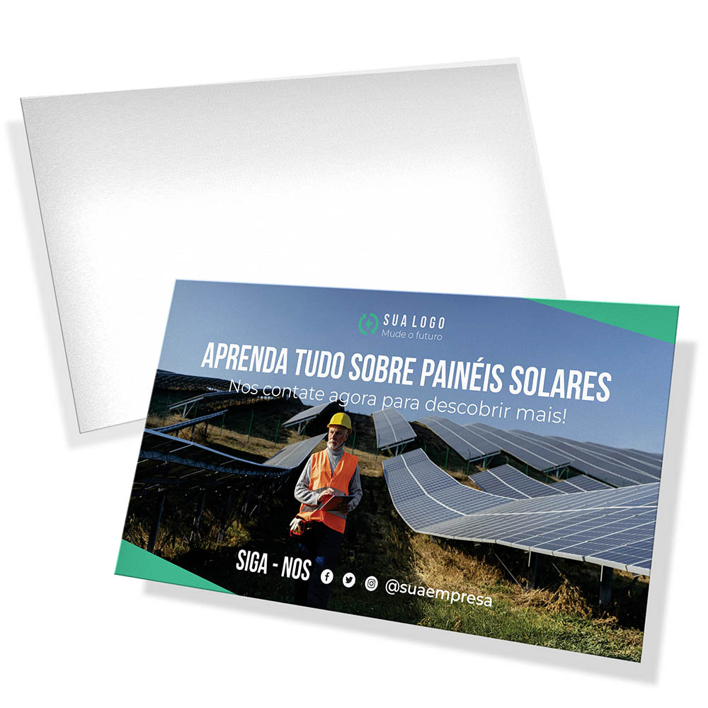 ID: 7441 Descrição: Couche Brilho Digital - 300g Quantidade: 50 Valor: R$ 97,00 Cores: 4X0 Tamanho: 91 x 102 mm Prazo: 3 dias úteis