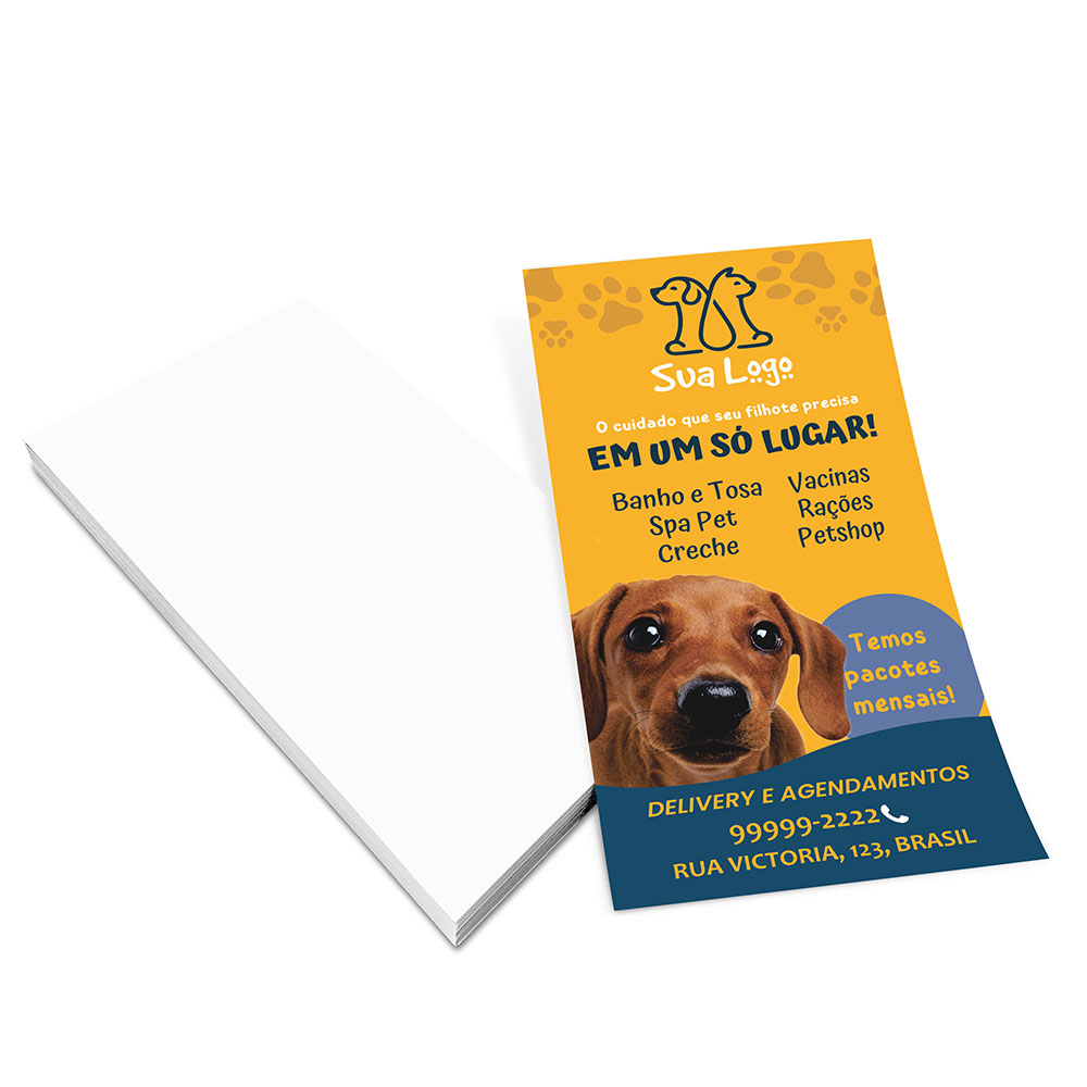 ID: 7020 Descrição: Supremo - 305g Quantidade: 500 Valor: R$ 116,00 Cores: 4X0 Tamanho: 98 x 60 mm Prazo: 6 dias úteis