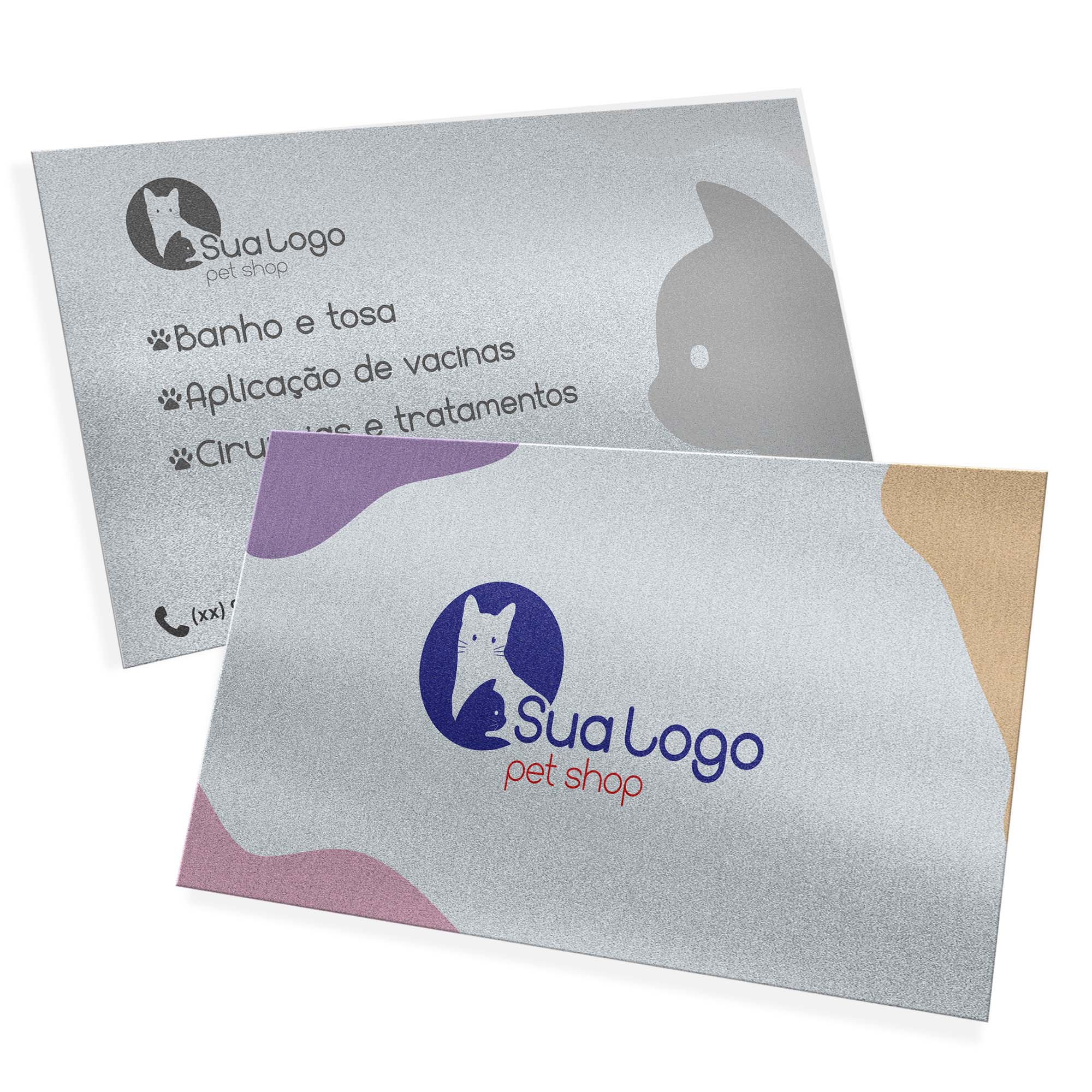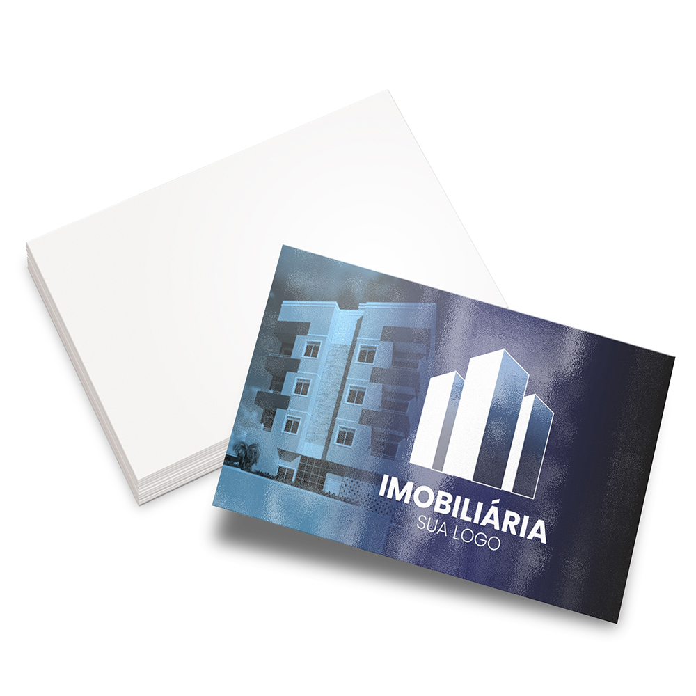 ID: 6930 Descrição: Metalizado - 250g Quantidade: 50 Valor: R$ 91,00 Cores: 4X1 Tamanho: 85 x 55 mm Prazo: 3 dias úteis