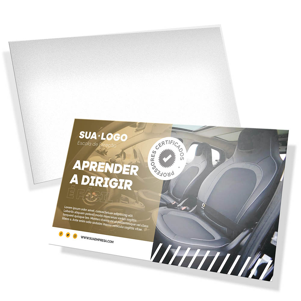 ID: 8429 Descrição: Couche Brilho Digital - 300g Quantidade: 100 Valor: R$ 141,00 Cores: 4X4 Tamanho: 153 x 91 mm Prazo: 3 dias úteis