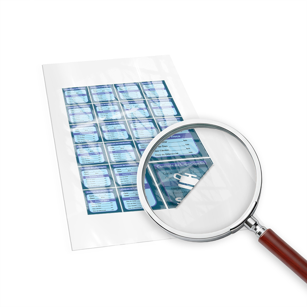 ID: 610 Descrição: Adesivo Bopp Transparente Resinado - 120g Quantidade: 30 Valor: R$ 123,00 Cores: 4X0 Tamanho: 91 x 51 mm Prazo: 9 dias úteis